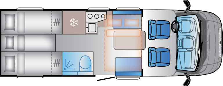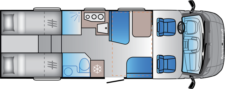Packa det som är viktigt, och lite till! Sun Living-fordon har gott om förvaringsmöjligheter. Rymliga skåp, generösa garderober, förvaring under sängen och till och med dolda golvfack som håller dina viktigaste saker organiserade och lättillgängliga.